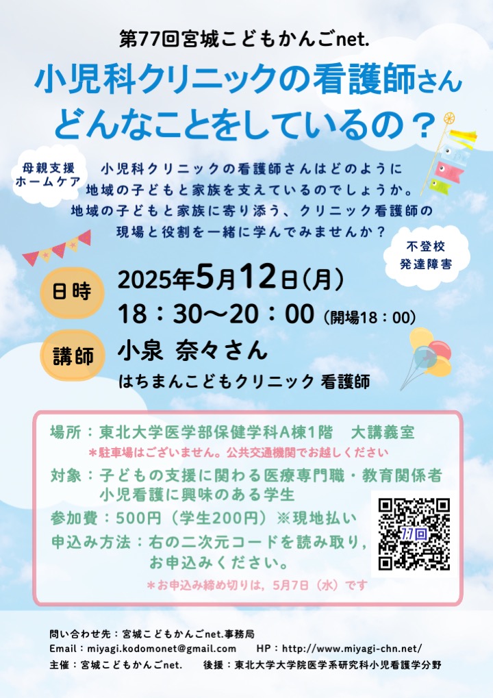 さて、第77回宮城こどもかんごnet.のお知らせです。
